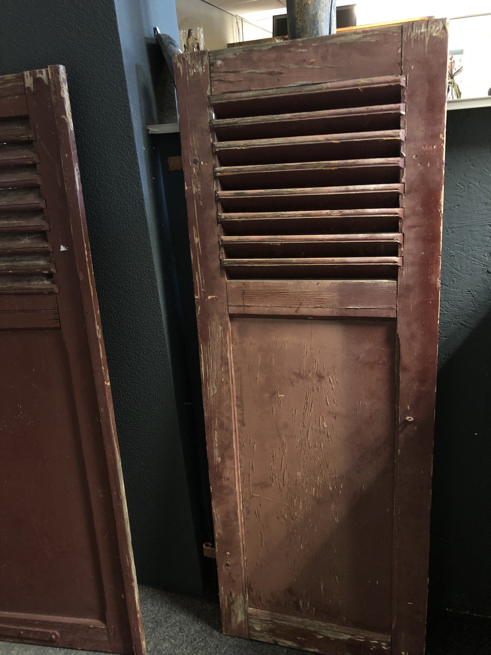 Prachtige oude franse luiken in een mooie verweerde ossenbloed kleur.