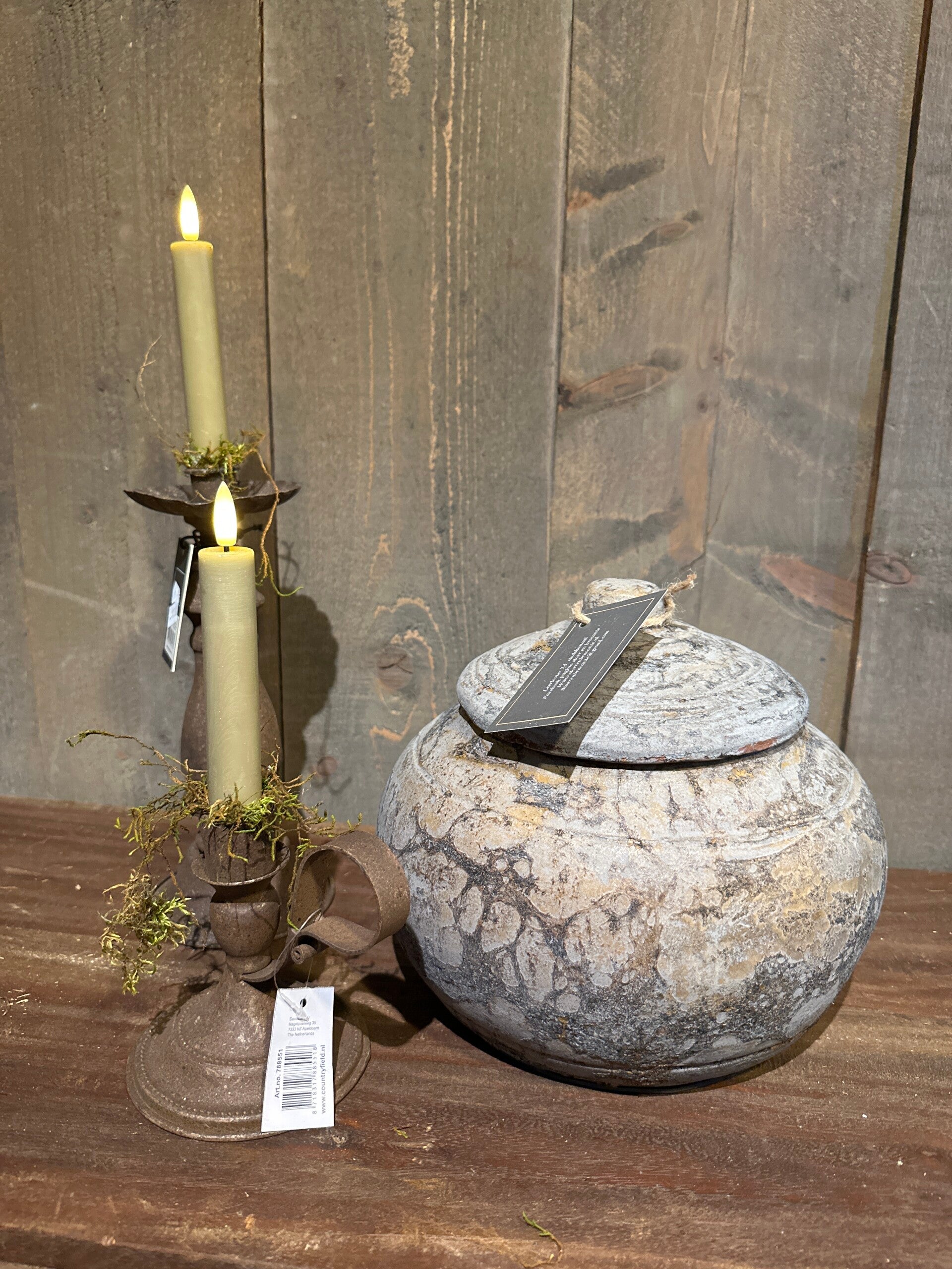 Mooie stoere licht grijs gemêleerde pot met deksel