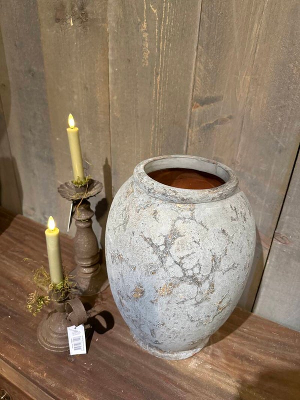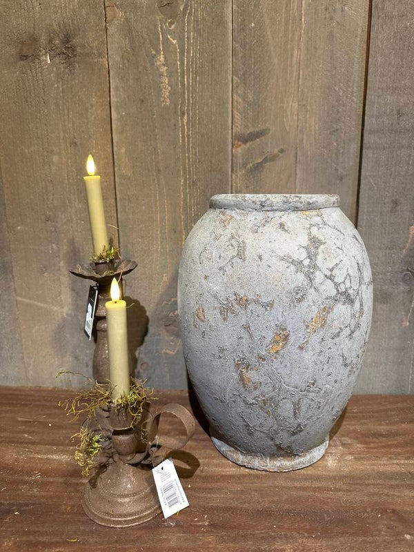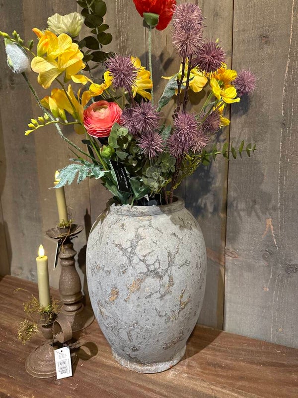 Stoer en sobere vaas in een mooie licht grijze gemêleerd uiterlijk prachtig met bv een (nep) veldboeket