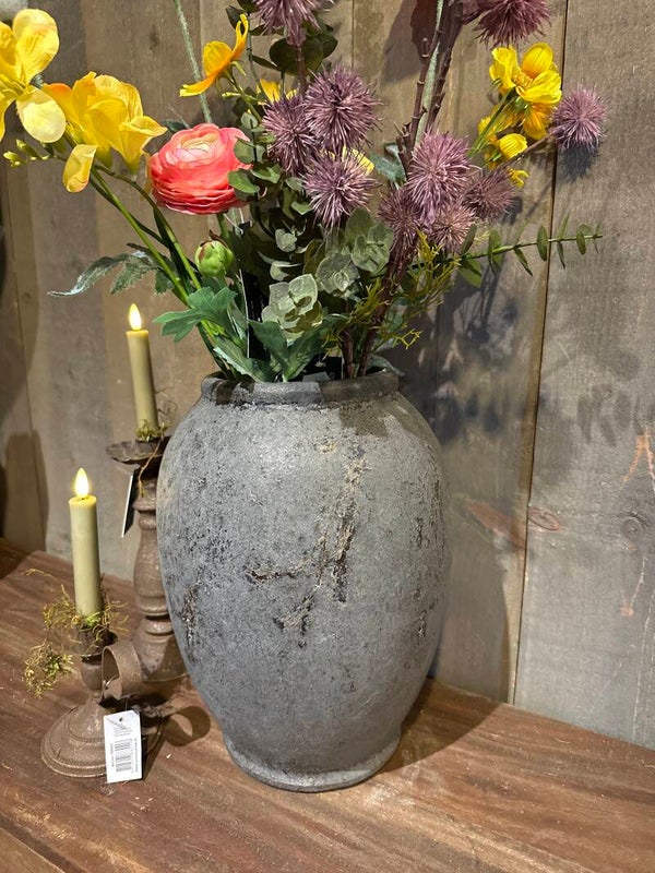 Stoer en sobere vaas in een stoere bruin/grijze kleur prachtig met bv een veld boeket